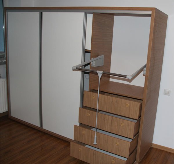 Sifonierul este prevazut cu sertare pe glisiere Blum care permit o glisare usoara, precum si cu lift pentru haine, astfel incat acestea sa poata fi coborate la inaltimea utilizatorului.