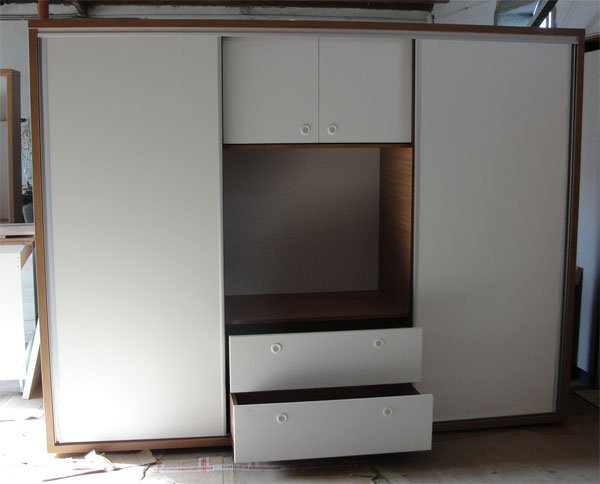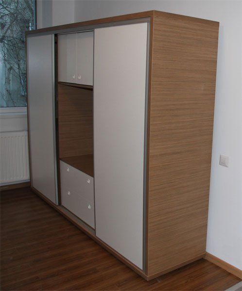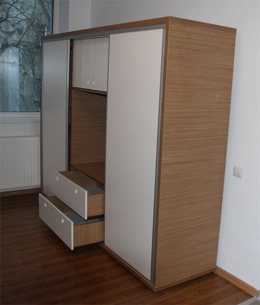 Intr-un spatiu restrans oferta posibilitatea depozitarii hainelor cat si o pozitionarii televizorului.