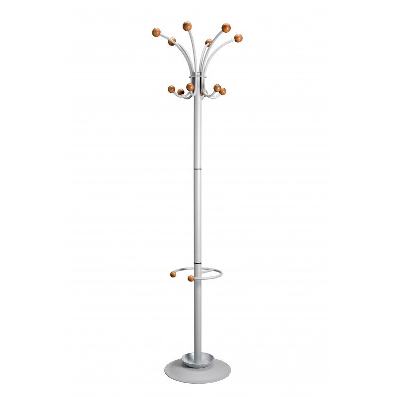 Cuier pom metalic gri sau argintiu, cu suport umbrela si elemente din lemn de fag.