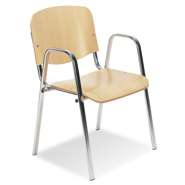 Scaun cu rama metalica executata din teava ovala cromata, sezut si spatar din elemente mulate de fag, diverse culori.
