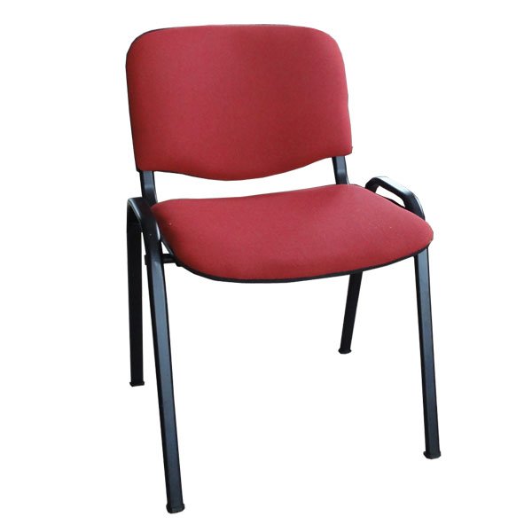 Scaun cu rama metalica vopsita culoare negru. Sezutul si spatarul sunt tapitate cu stofa in urmatoarele culori: rosu, verde, albastru, gri, negru, grena, maro.